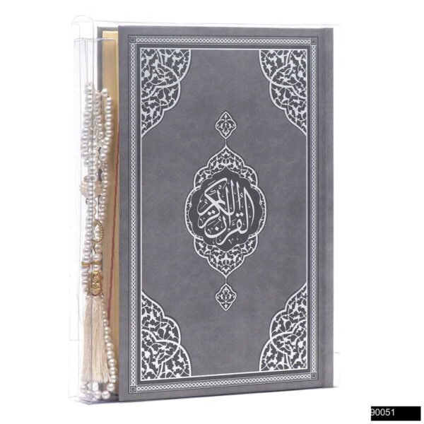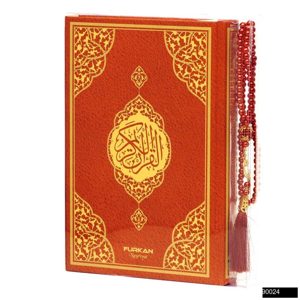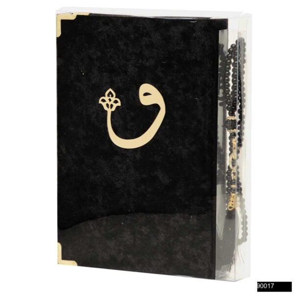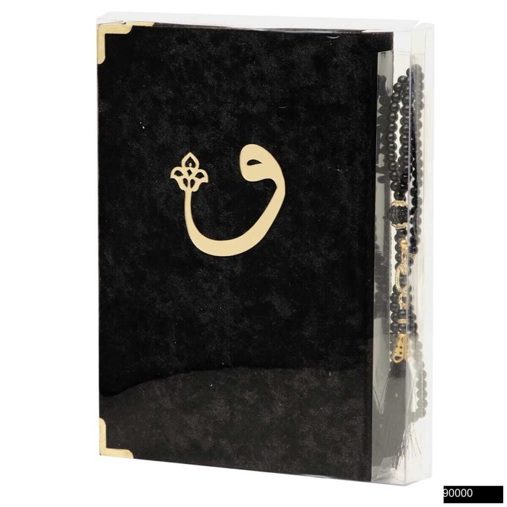 Siyah Çanta Boy Bilgisayar Hatlı Arapça Sıvama Kapak Kuran-ı Kerim + Cam İnci Tesbih + Asetat Kutu Hediye Seti
