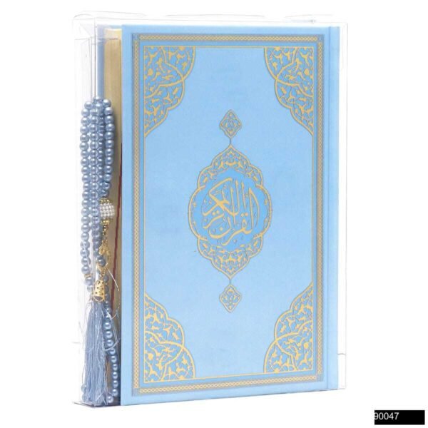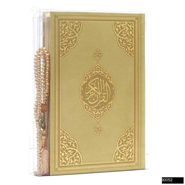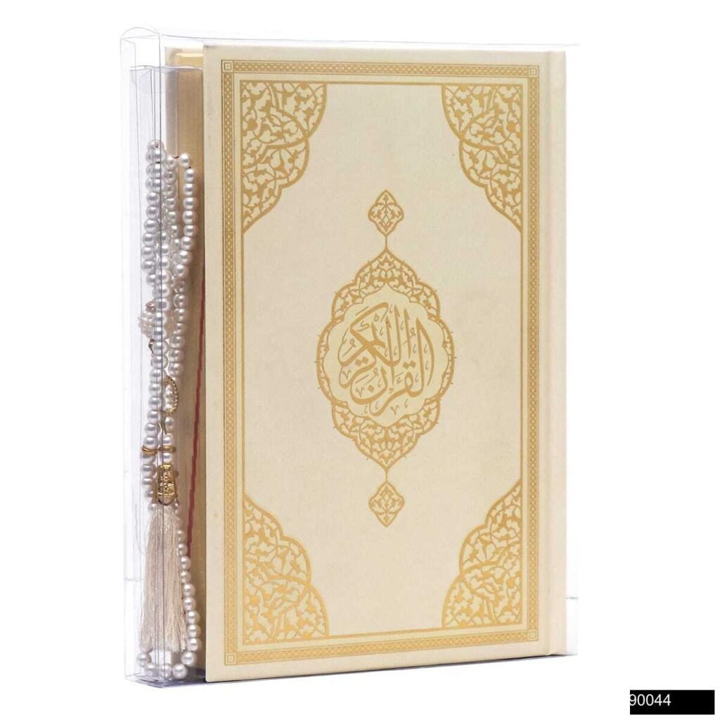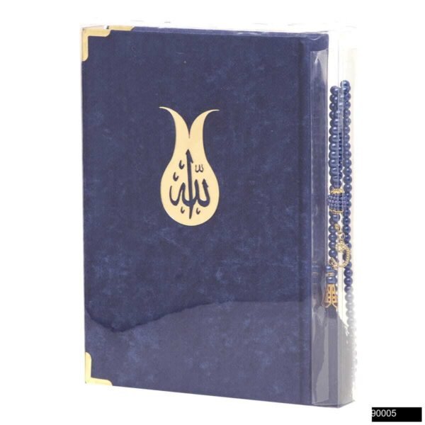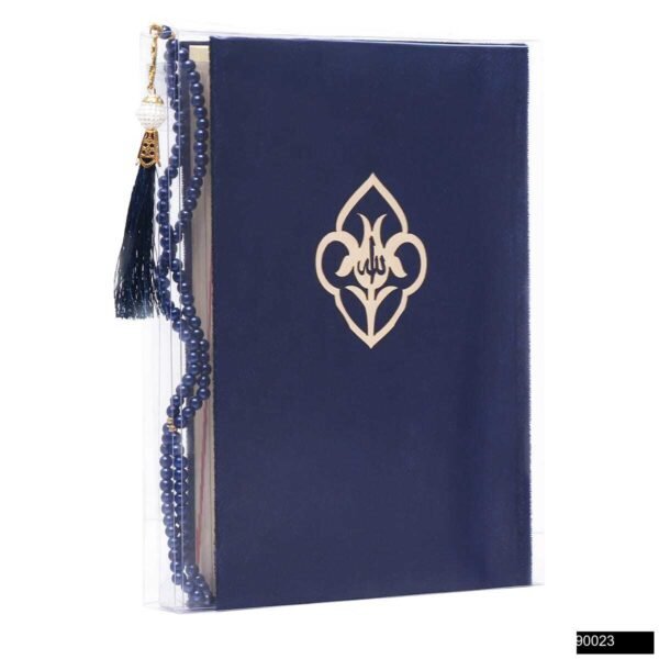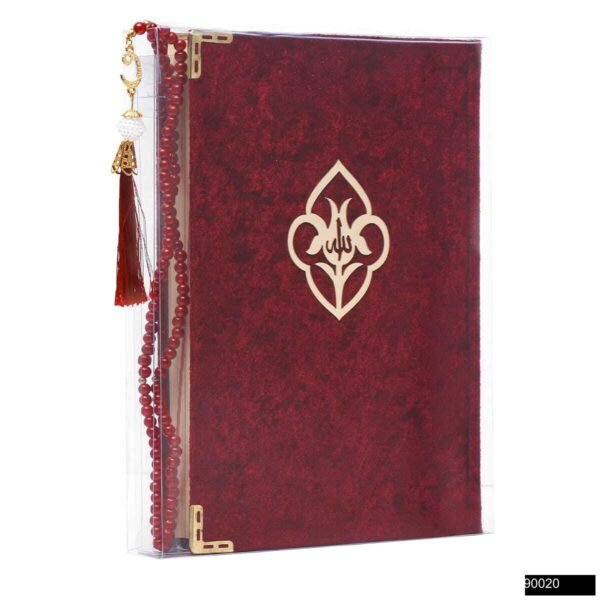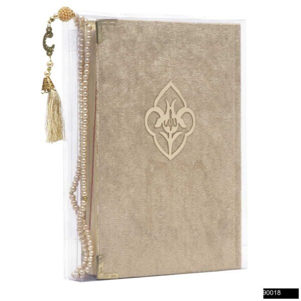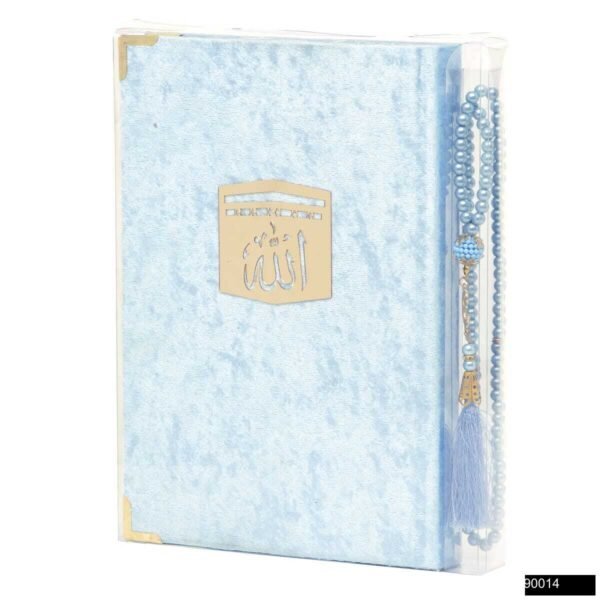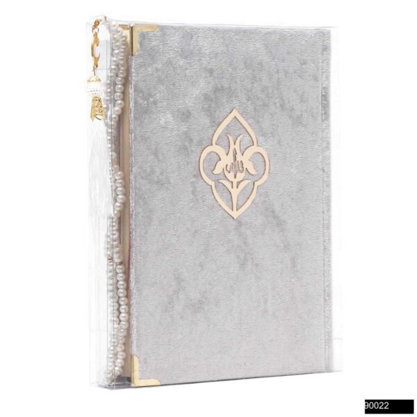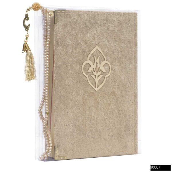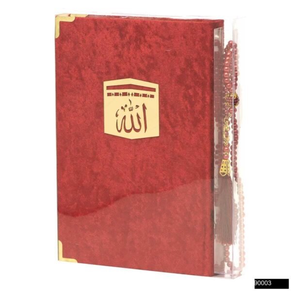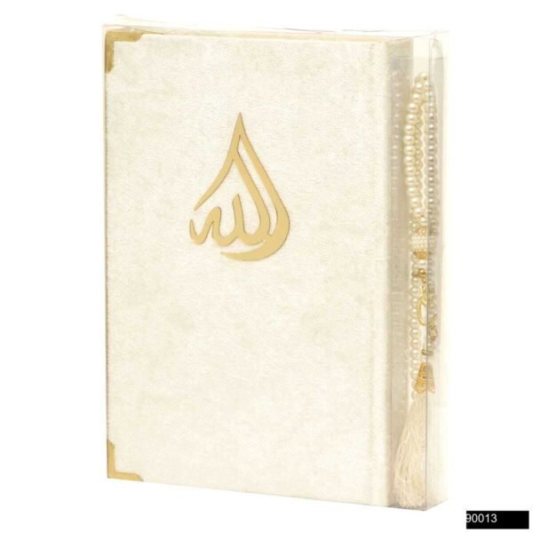 8x8x3 cm Zühre Serisi Asetat Kutu + Mikro Boy Arapça Tek Sayfa Püsküllü Kadife Kuran-ı Kerim + Gül Kokulu Tesbih Seti