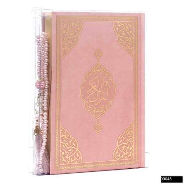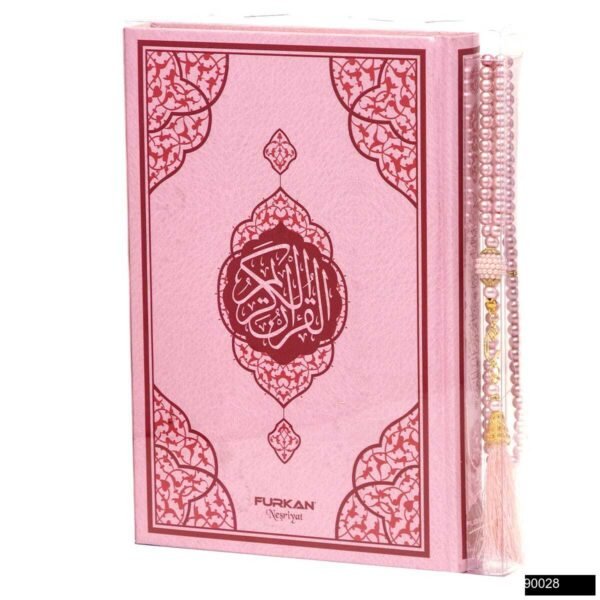 Pembe Hafız Boy Bilgisayar Hatlı Arapça Sıvama Kapak Kuran-ı Kerim + Cam İnci Tesbih + Asetat Kutu Hediye Seti