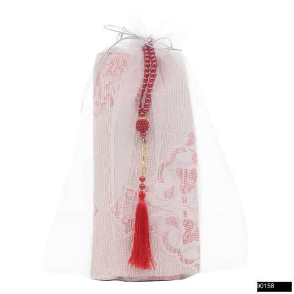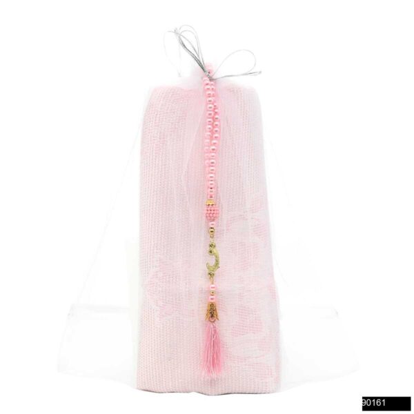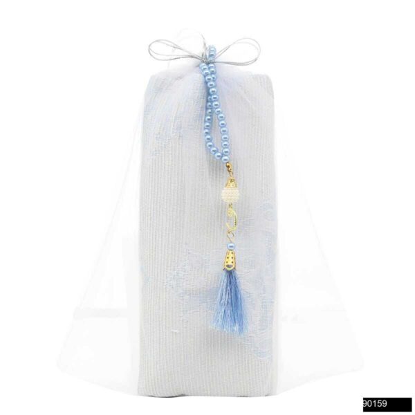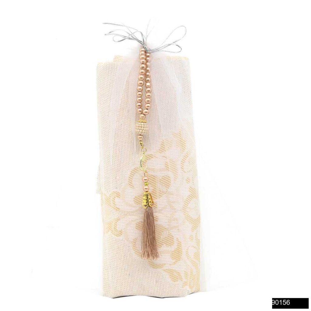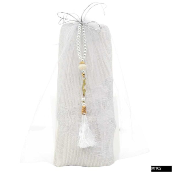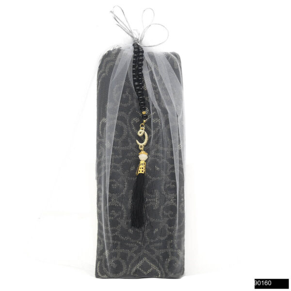 Siyah Orta Boy Tül Kesede Seccade + Pleksili Cam Cam İnci Tesbih Seti