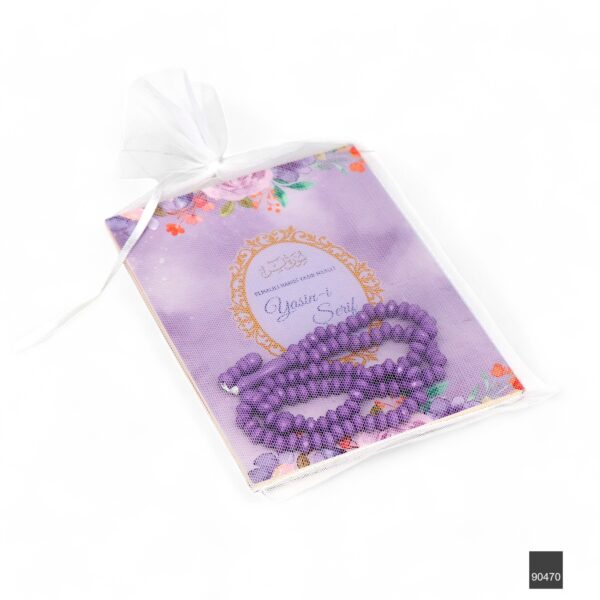 Tül Kese İçerisinde Gülistan Çanta Boy 80 Sayfa 3lü Karton Kapak Yasin + Gül Kokulu Tesbih Seti